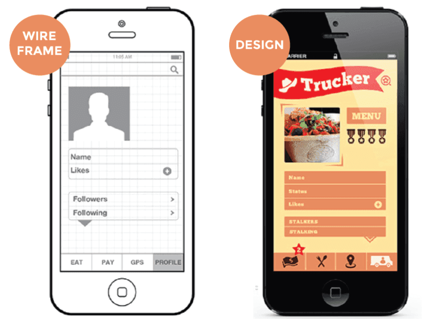 Wire frame and design showing the process and simplicity if user interface.