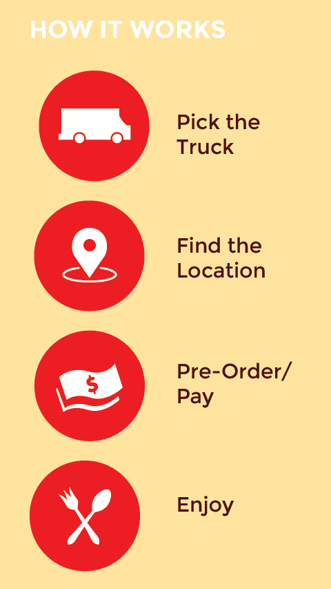 Create an app that connects people to their favorite food trucks by posing questions where in normal situations would present a not-so-welcomed outcome.