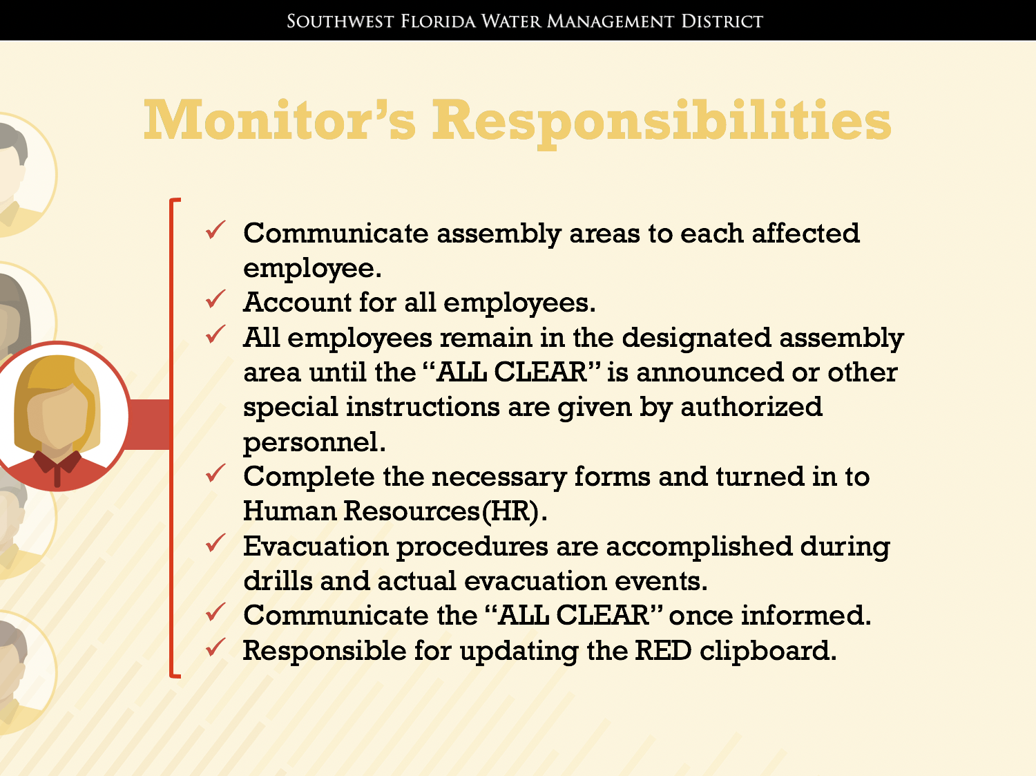 The presentation happened before the actual fire drill so mentors would know what to expect (these are just a few slides). Although no one was told when the drill would actually happen, we made sure to take the necessary steps to make sure everyone was prepared. The Red Clipboard was used by the head staff to make sure everything was running accordingly.