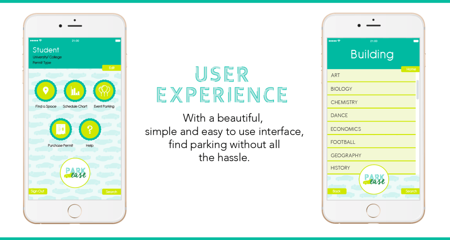 With a beautiful and simple to use interface, ParkEase allows students to find a parking spot on campus without all of the hassle. Simply select your university, the type of parking permit you have, the building you want to go to, and let ParkEase do the rest. The app has bonus features that include finding the best time to park, the parking lots that are effected by campus events, a section for purchasing a parking permit if you don’t already have one, and a short video on how to navigate the app.