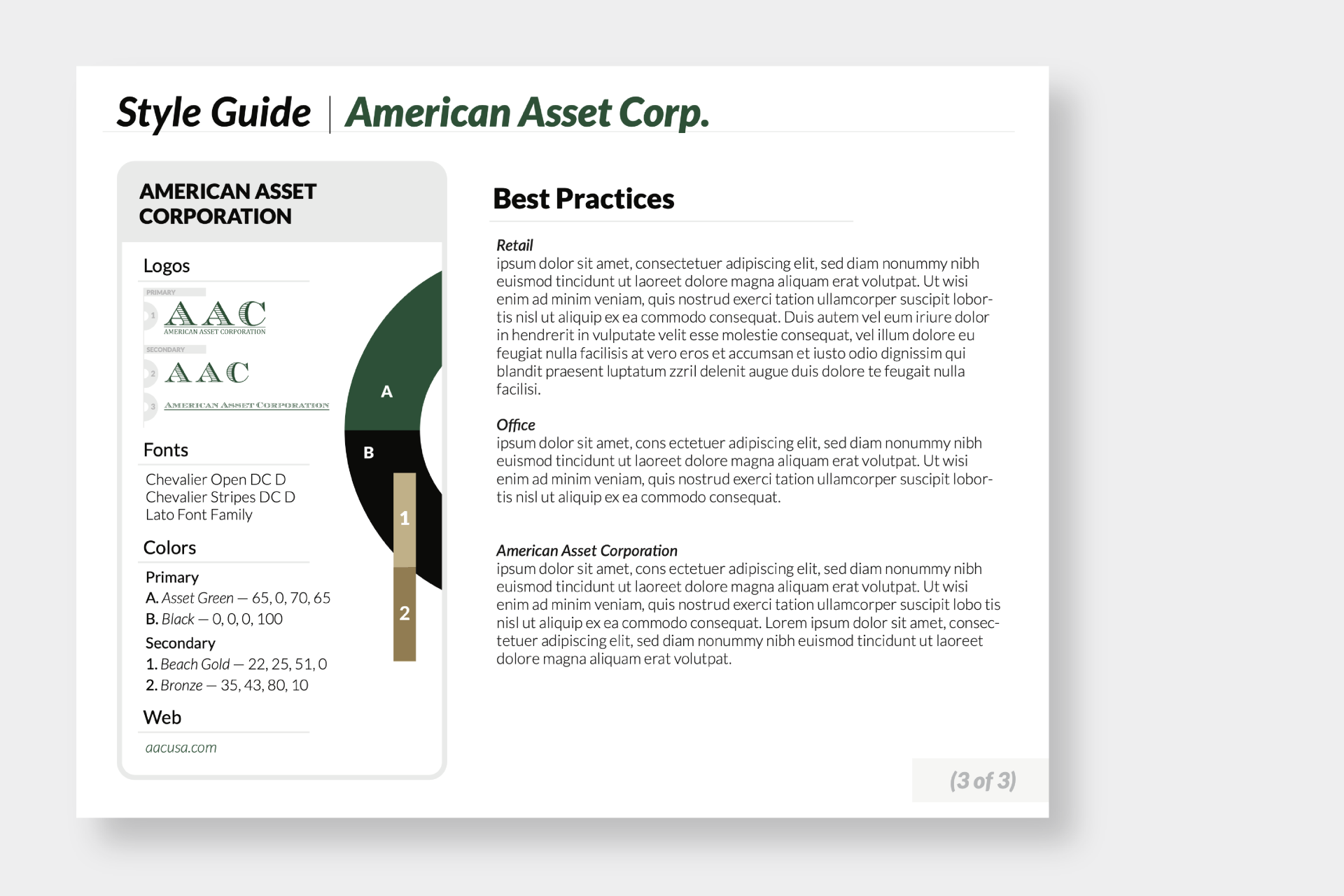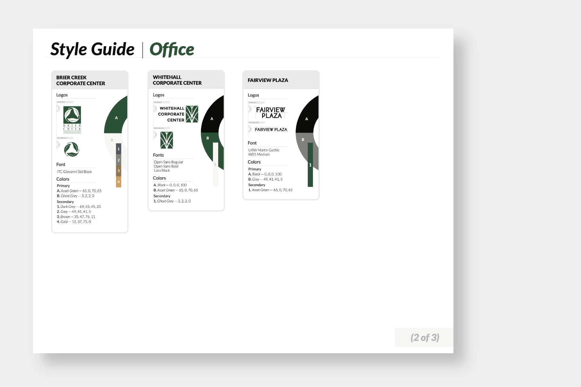 Upon being hired, I was asked to comb through each of the properties to refine its look. This consisted of updating and revising logos, color schemes, font selections and creating new documents to send to tenants, potential tenant and all clientele with the appropriate branding.