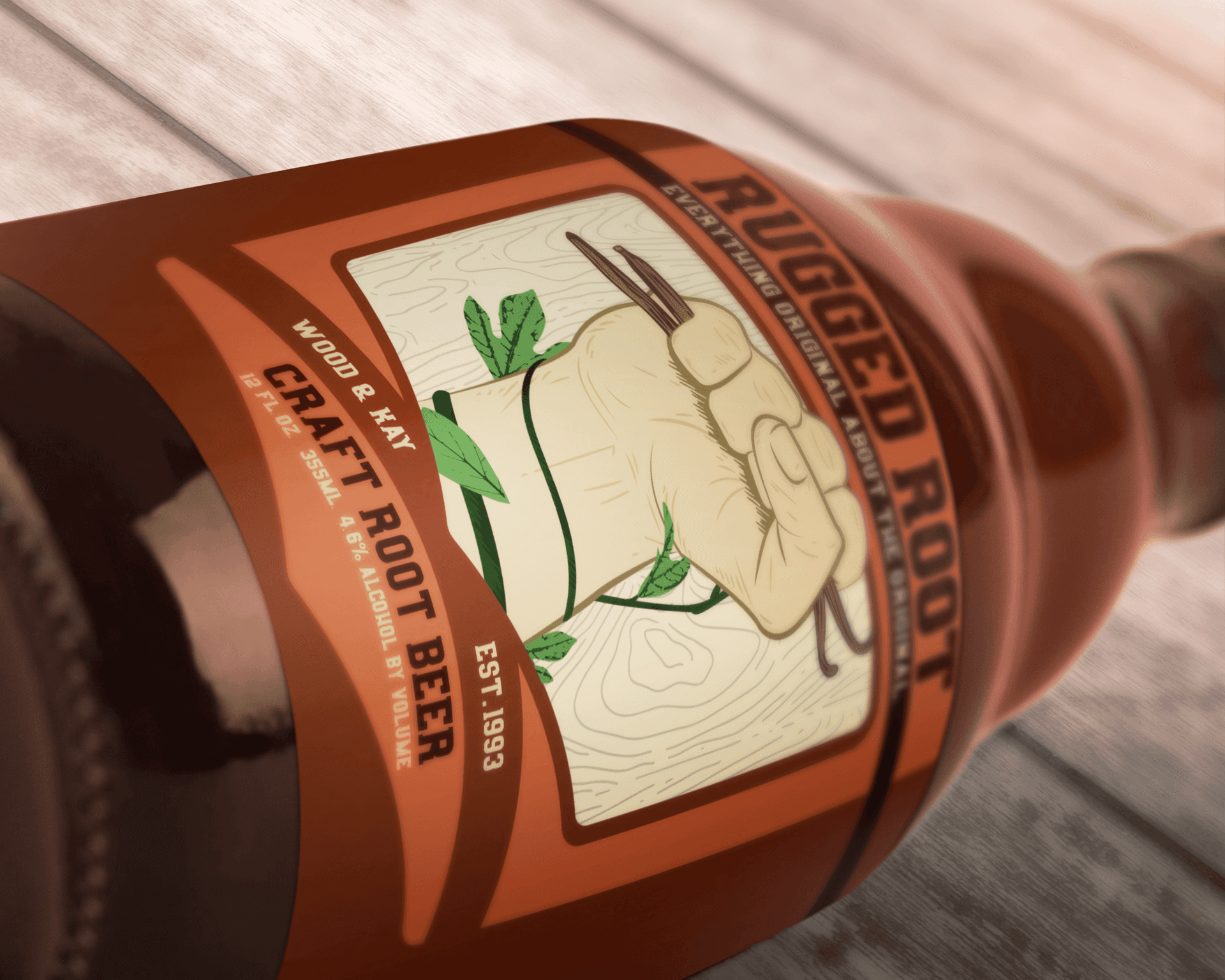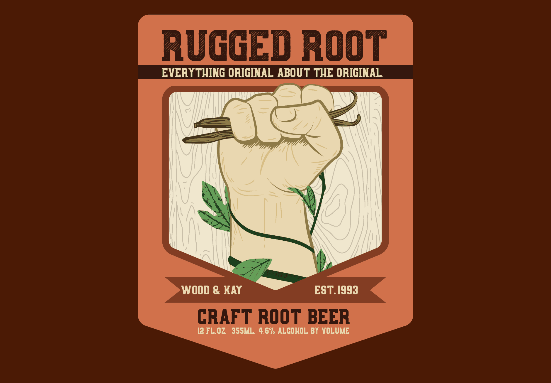 Fictional brand "Rugged Root" which includes brand, package and logo design.